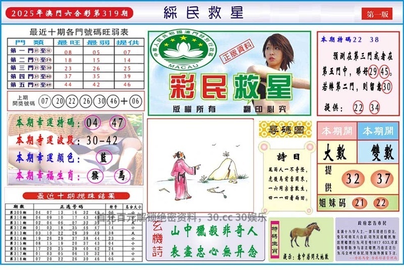 | 321期:⑦码 | 06.33.27.08.01.19.46 | 开:發00 |
